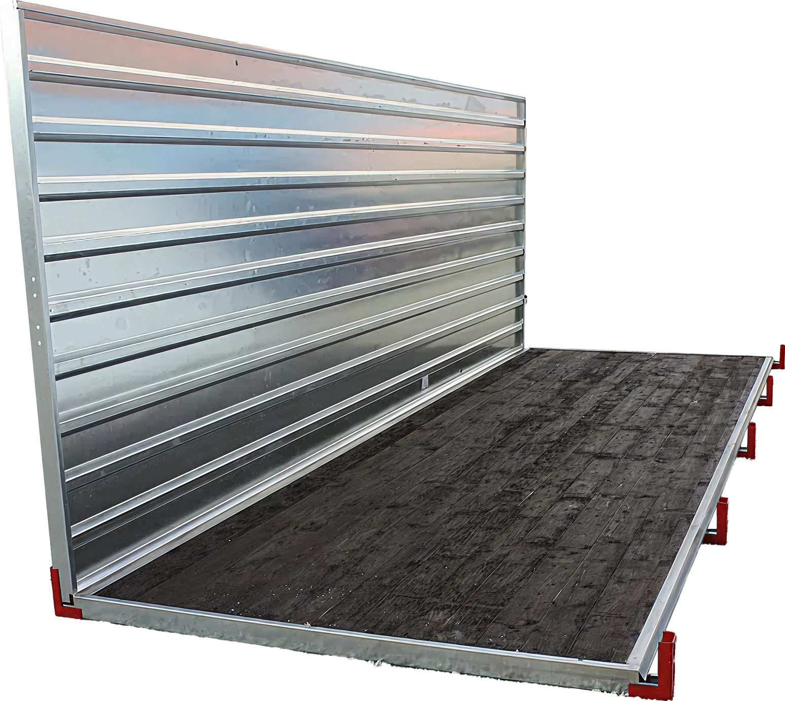A padozathoz mindkét oldaltáblát úgy illesztjük, hogy a padozat profiljába becsússzon, amint azt a keresztmetszeti rajz is mutatja (lásd a rajzot). Ezután a sarok szögvasán keresztül a padozathoz csavarozzuk.