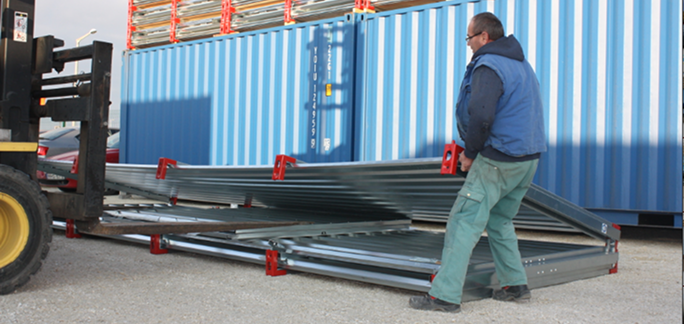 A  Kovobel szétszedhető konténer lapraszerelt kialakítása miatt bármely méretben a legszűkebb helyekre is daruzás nélkül eljuttatható. Az összecsukható mobil tároló a helyszínen kézzel is könnyedén  mozgatható, így nehezen megközelíthető helyekre is eljuttatható.