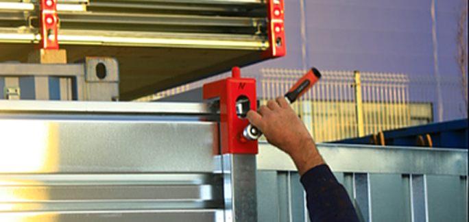 • A polclábakat függőlegesen a konténer oldaltábláihoz rögzítsük úgy, hogy a láb egyik végét a padlón, a másikat pedig a tetőn kialakított profilba csúsztatjuk (lásd polc kialakítása). A beszerelt polclábak tetszőlegesen, a használattól függően alakíthatók ki. A polctartó láb terhelhetősége darabonként max. 70 kg.